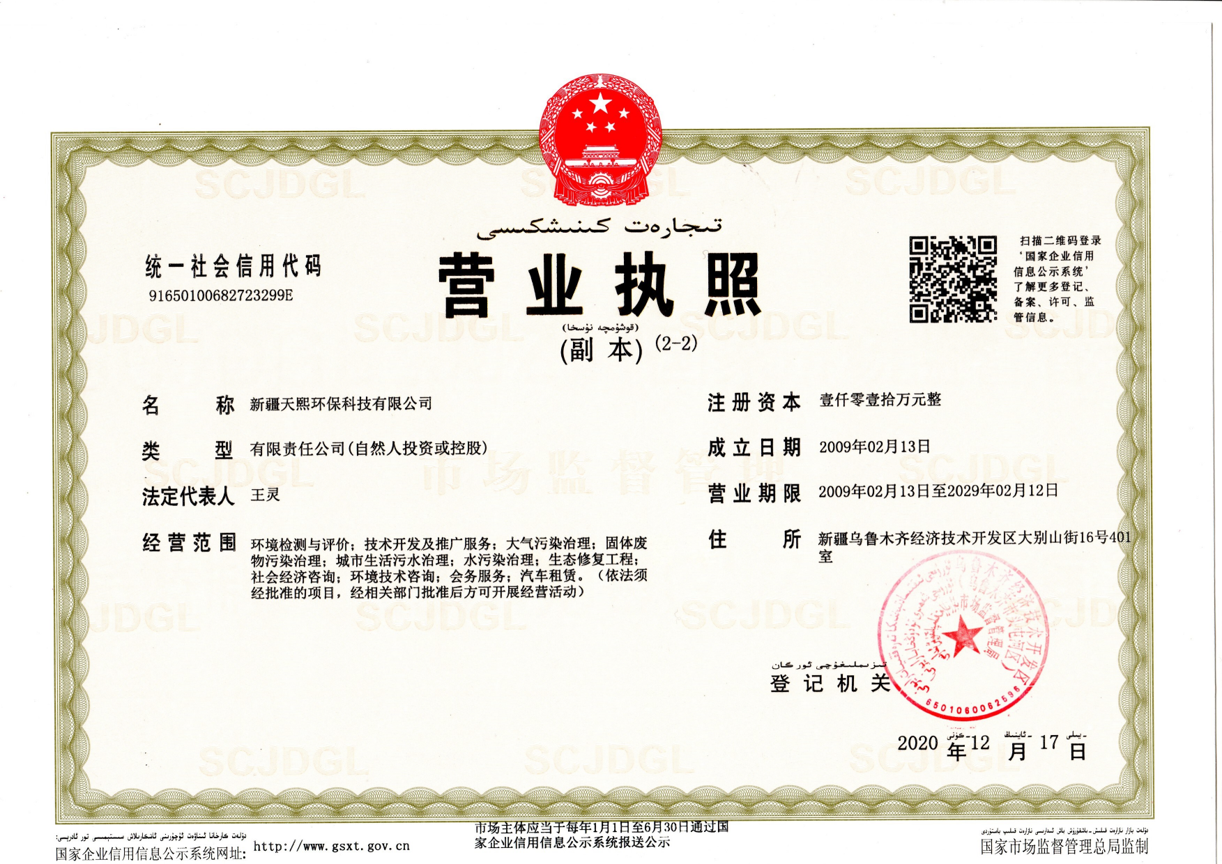 2009 年 2 月,新疆天熙环保科技有限公司应运而生,其注册资本达 1010 万元,坐落于乌鲁木齐经济技术开发区大别山街 16 号,乃是一家专注于环境监测、环境技术咨询以及环保工程的高新技术企业。当下,该公司拥有两项发明专利、十多项实用新型专利以及两项计算机软件著作权。